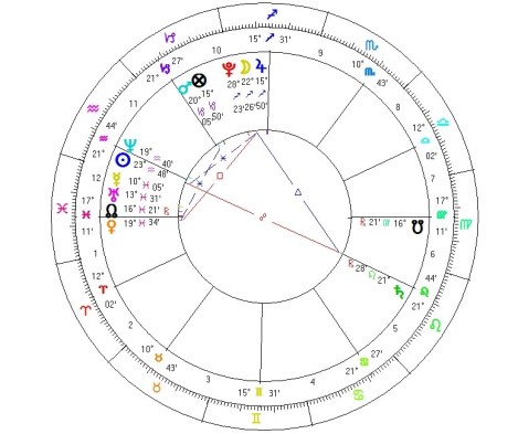It is also interesting that the Nodes are conjunct the ASC/DES axis, showing a fated quality to this question. Having tried to find someone to direct this clip for quite a long time with no success; signified by the Sun (Lord 6) in detriment on the 12th cusp opposite Saturn in detriment retrograde, being let down by others promising one thing and not coming through. These others could also be signified by Lord 7 Mercury in Pisces and with Uranus in the 12th, very unreliable. Neither Sun nor Mercury engenders any sense of reliability and trust.
