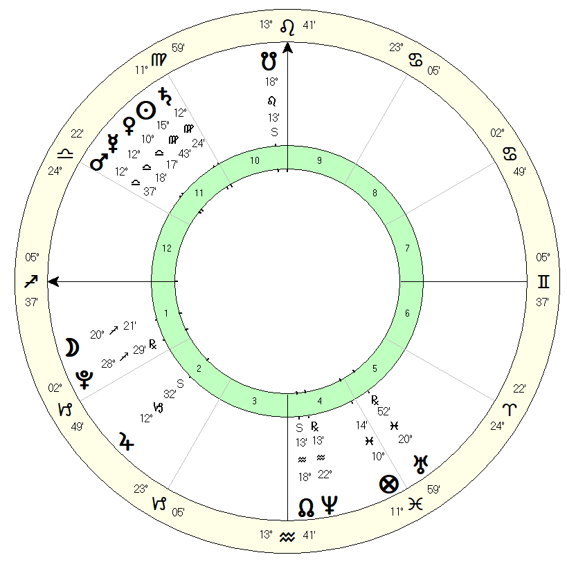 I could not get beyond the fact that the Moon would first hit Pluto before he could complete his sextile to Venus; which I interpreted as a prohibition. (This chart adds to my growing understanding that the outer planets do not function in the same manner as the seven classical planets do).